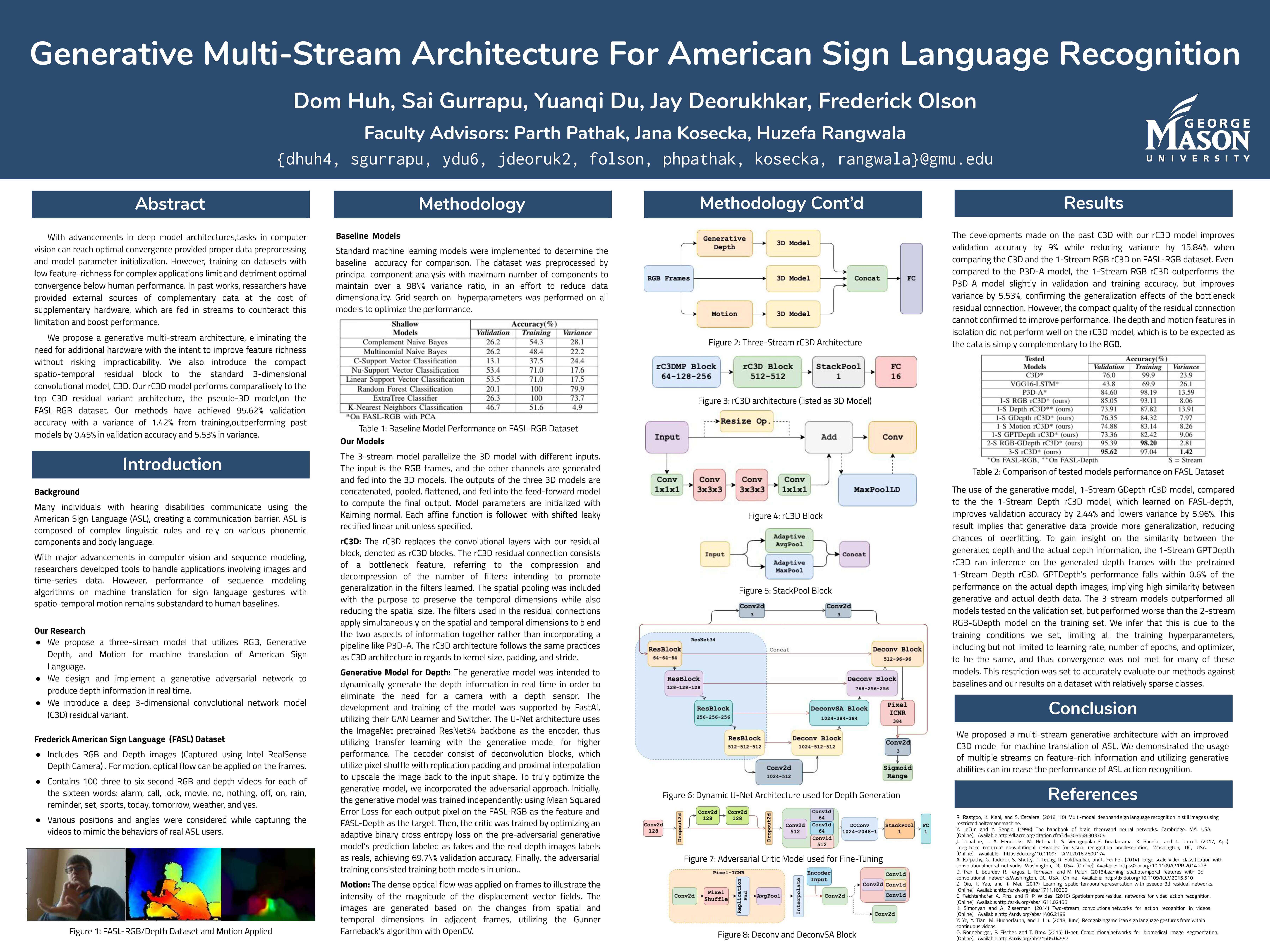 Developed a novel multi-stream activity recognition model that uses sequential video data, generative depth, and motion to recognize sign language.